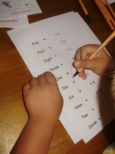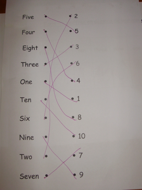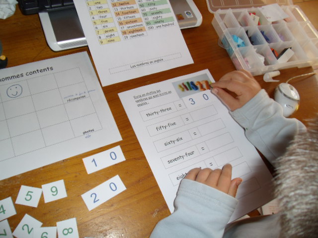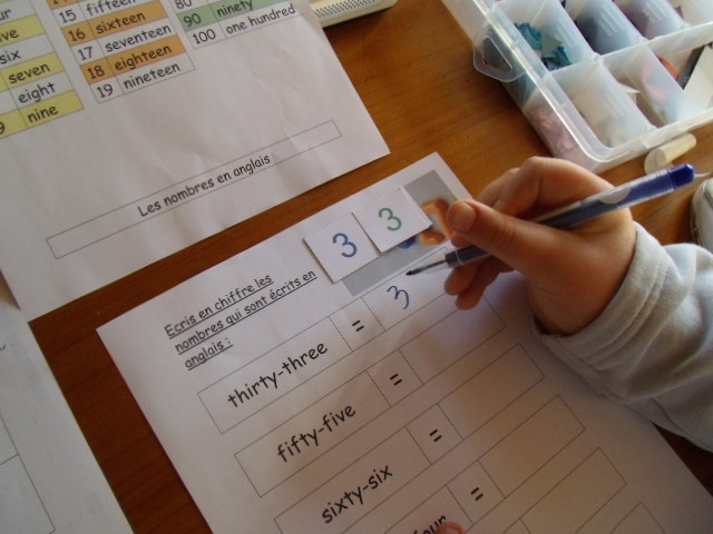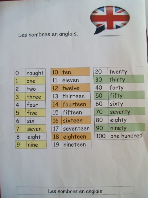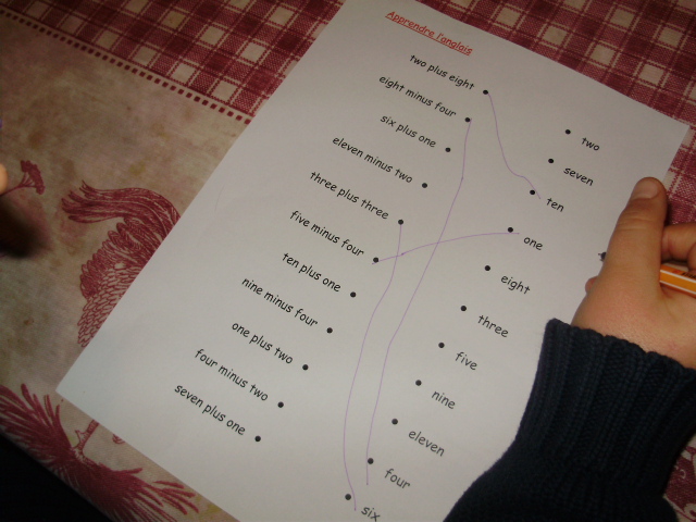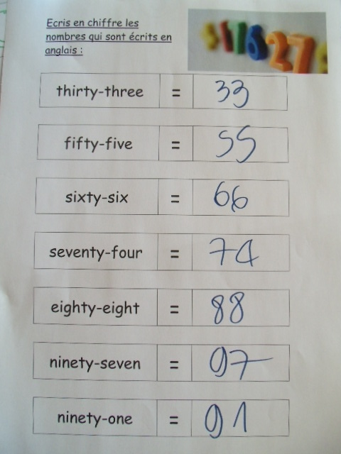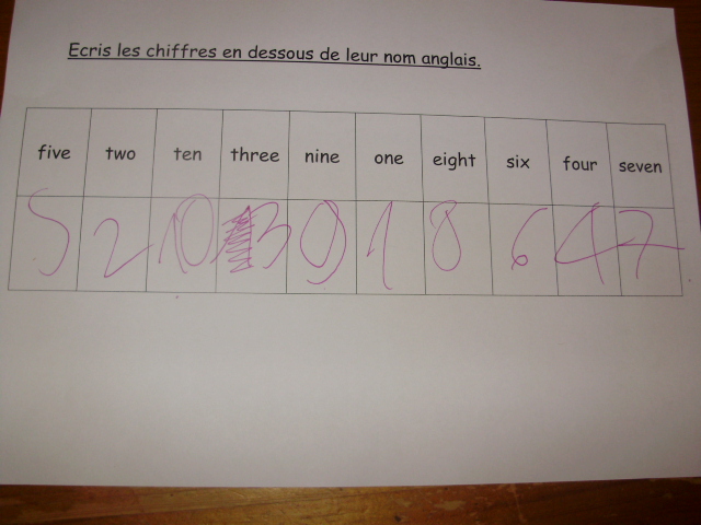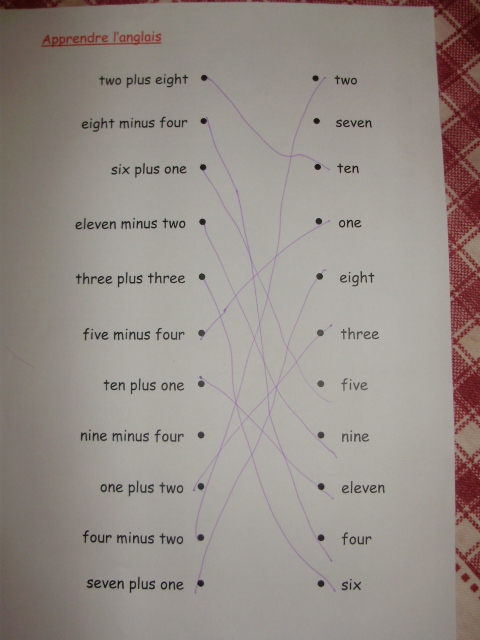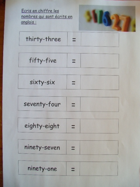 s'agit dans un premier temps de relier le mot anglais au chiffre. A