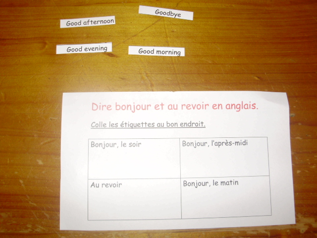 Fiches pour dire "bonjour" et "au revoir" en anglais