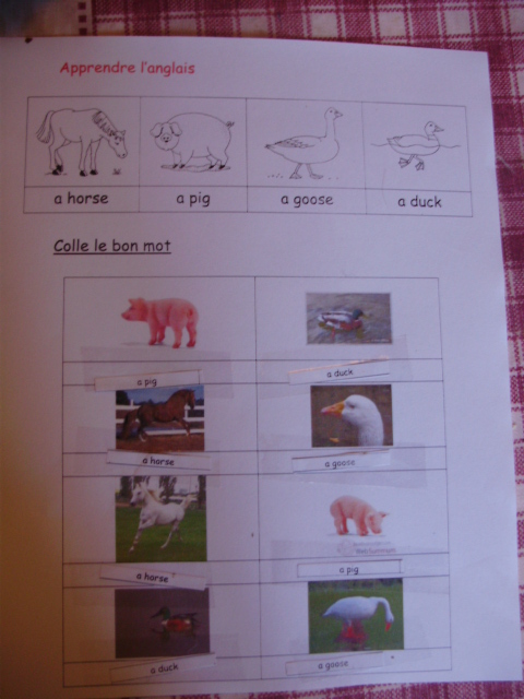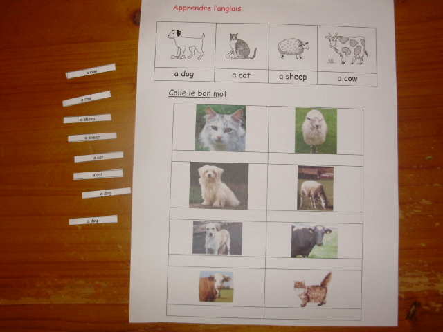 des fiches pour réviser et croiser le nom des animaux que nous avons