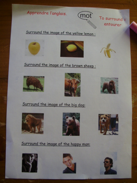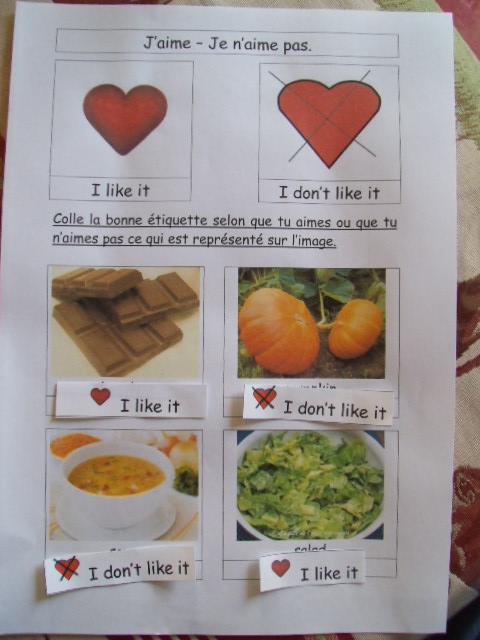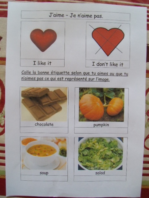entretenir le vocabulaire appris, j'ai créé de fiches que je propose