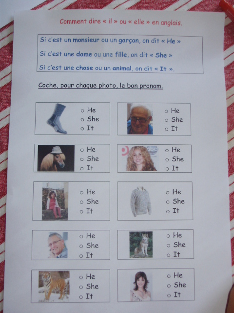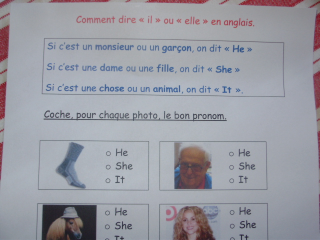 La seconde fonction de ces fiches est de réviser les pronoms sujets. Le