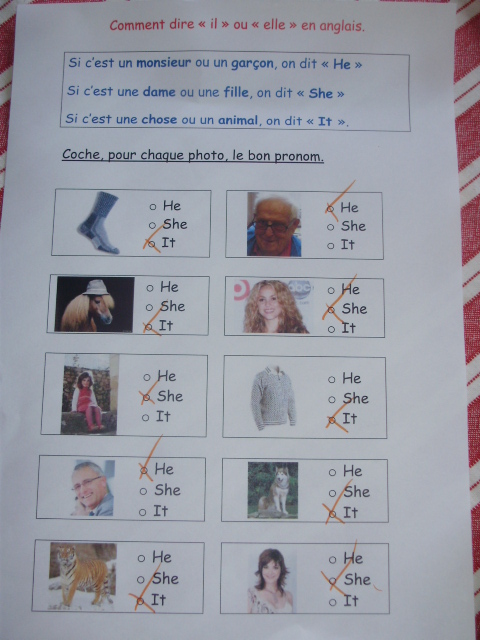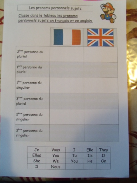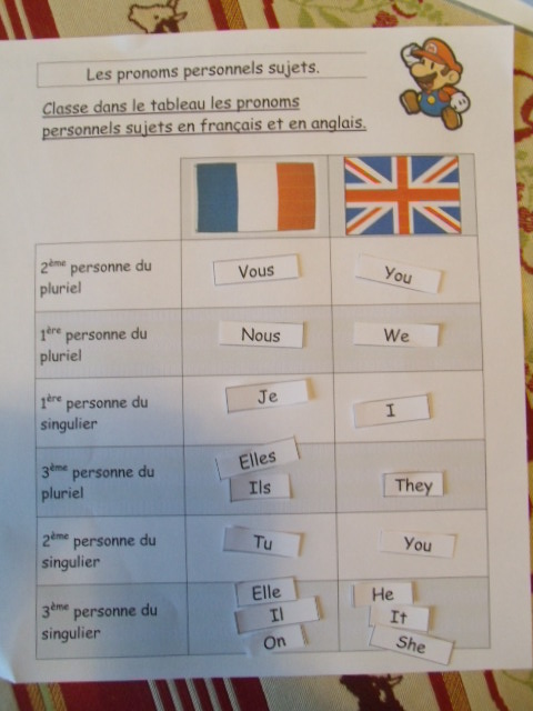 les pronoms personnels sujets, j'ai fait un travail de tri d'étiquettes