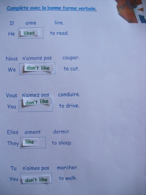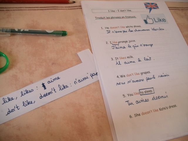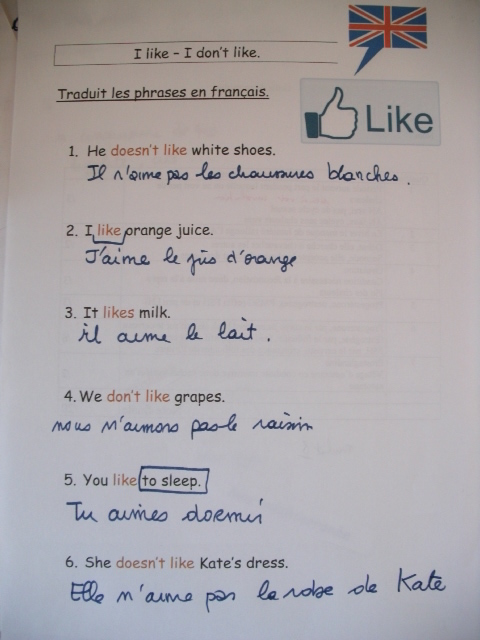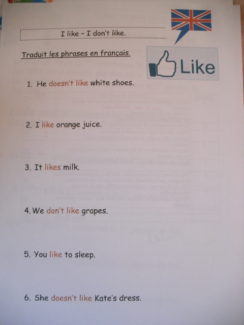 ou n'aime pas faire, est au programme d'anglais de l'école