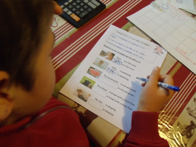 dans un deuxième temps, je lui demande de remplir les cases d'un