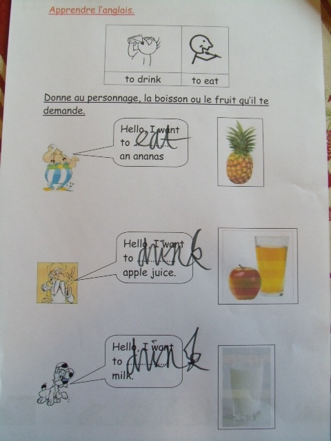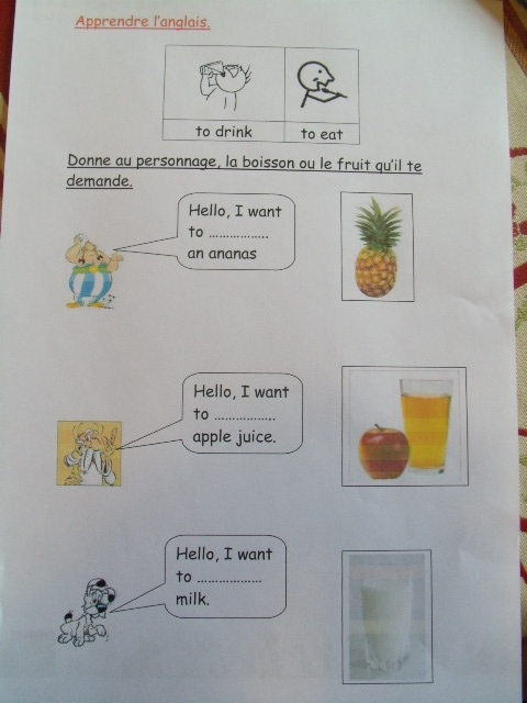réalisées pour revoir du vocabulaire autour de la nourriture et je les