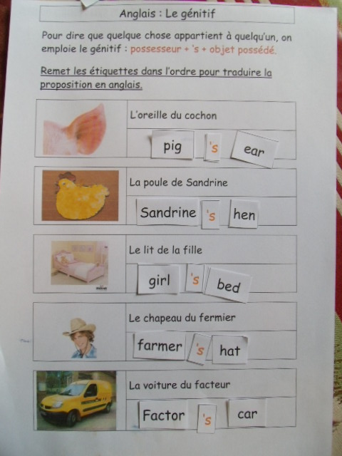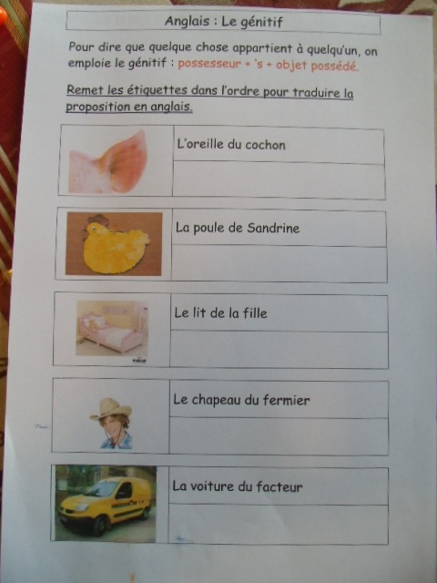 On apprend ainsi à associer un "possédé" à un "possesseur". Exemple,