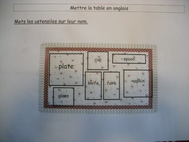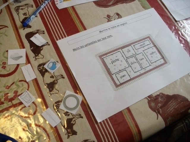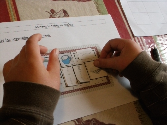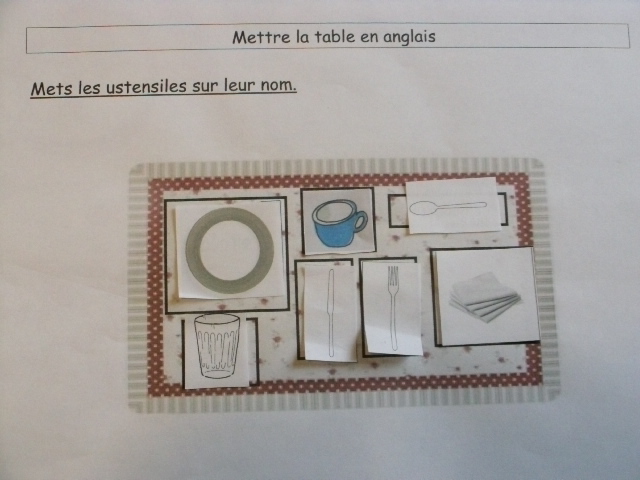 la table avant de manger. L'enfant doit coller l'image de chaque objet