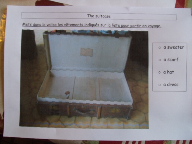 Dans ces fiches, l'enfant doit mettre dans la valise les vêtements qui