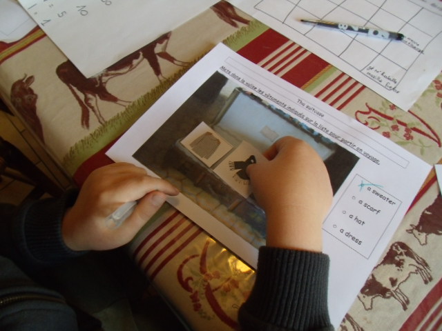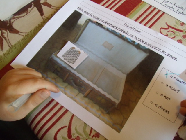 proposées). Il coche à chaque fois qu'il a mis le bon vêtement. Cette