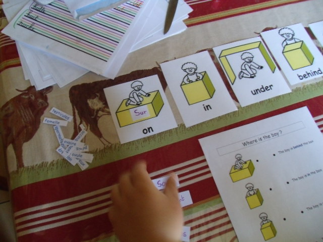 J'ai réalisé quelques fiches qui marchent bien avec notre enfant pour commencer à apprendre le vocabulaire.