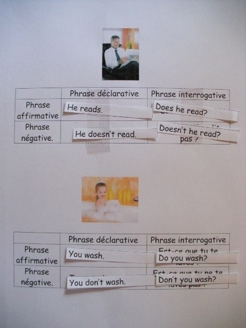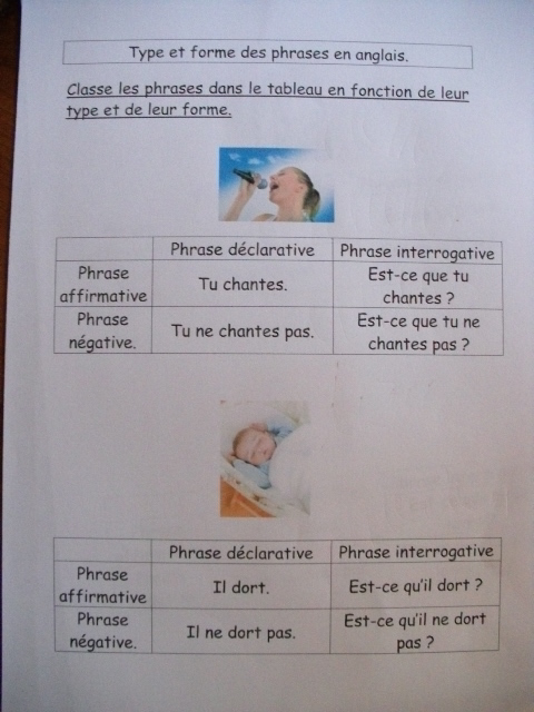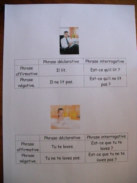 voir en parallèle, les formes affirmatives et les formes négatives non