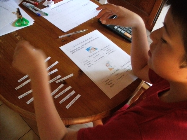 différentes personnes, puis j'aide notre fils à remplir le tableau.