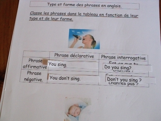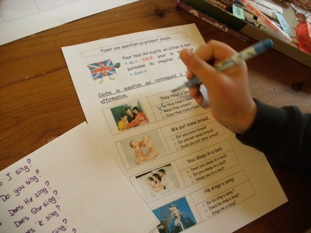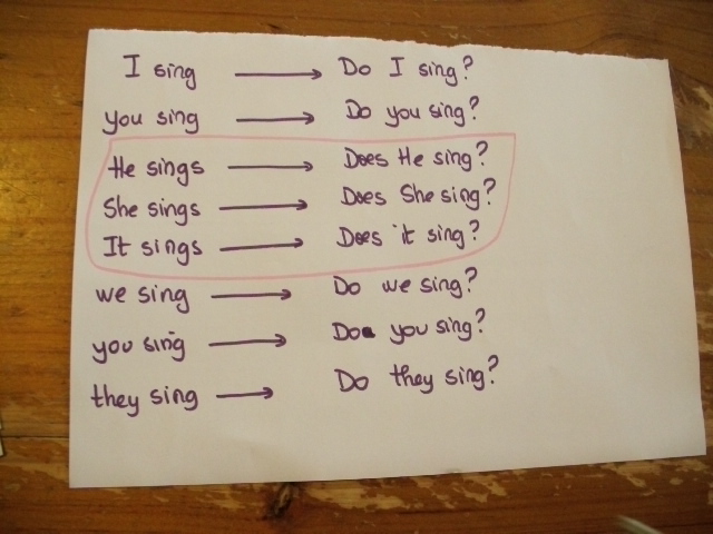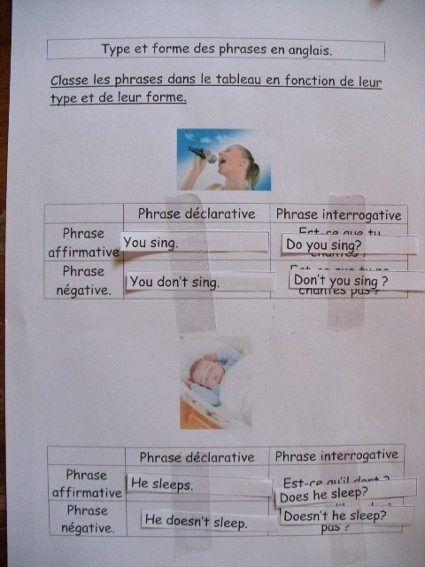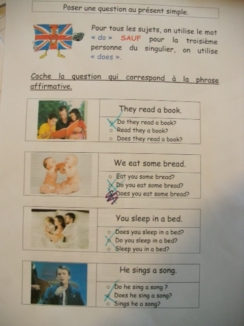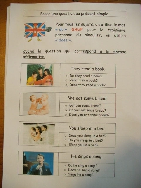 travailler l'utilisation de "do" pour poser la question, de "does" à la
