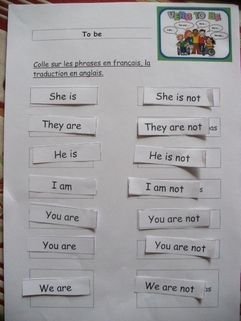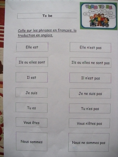 du verbe "to be" au présent. Pour cela, j'ai préparé un support