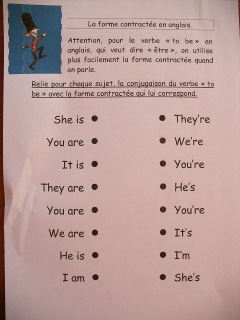 Nous apprenons à travers ces fiches que les anglais utilisent beaucoup les formes contractées du verbe "to be".