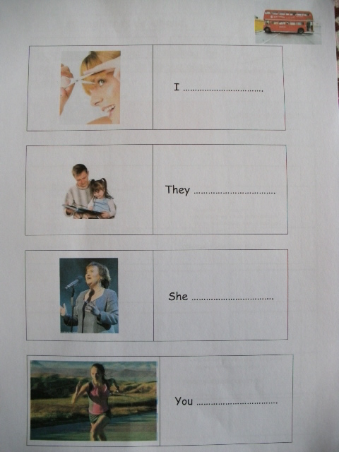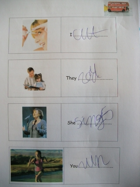 découpe les petites étiquettes qui présentent le verbe conjugué aux
