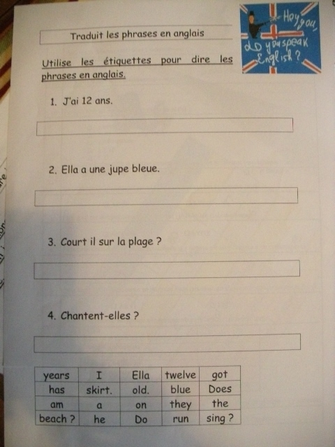dans les deux cas), j'ai proposé au petit roi de traduire des phrases