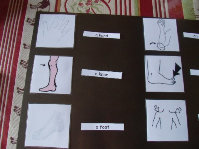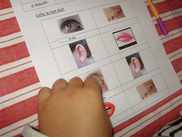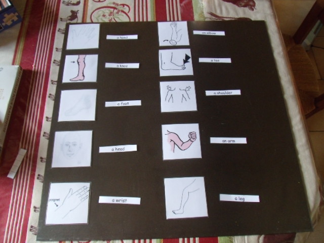Puis, on cherche sur la feuille support le nom anglais de la partie du corps que l'on doit identifier