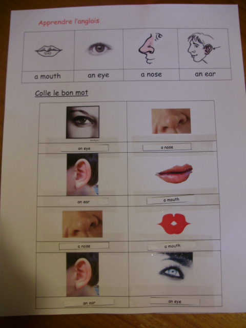 Les parties de la tête: On commence par le nez, la bouche, les yeux et les oreilles...