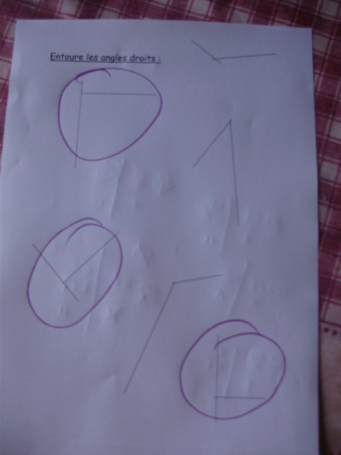 angles avec pour consigne d'entourer les angles droits.