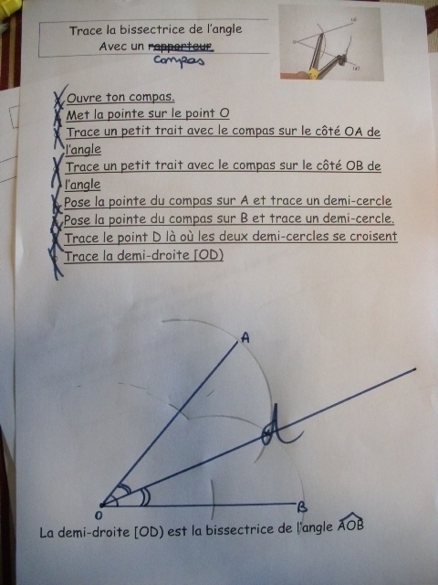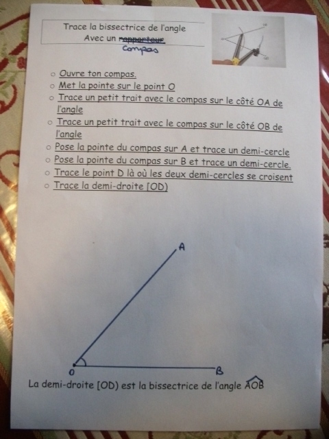 Fiches "Tracer la bissectrice de l'angle avec un compas"