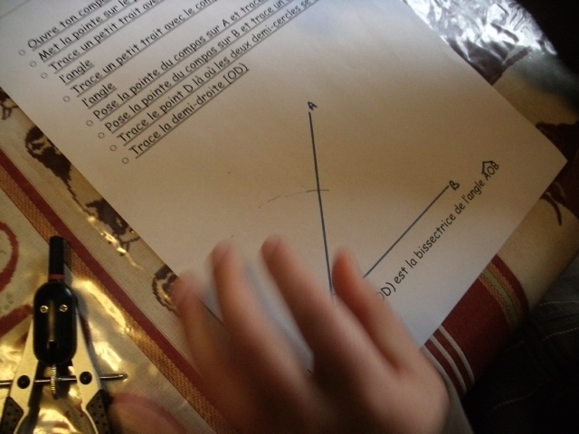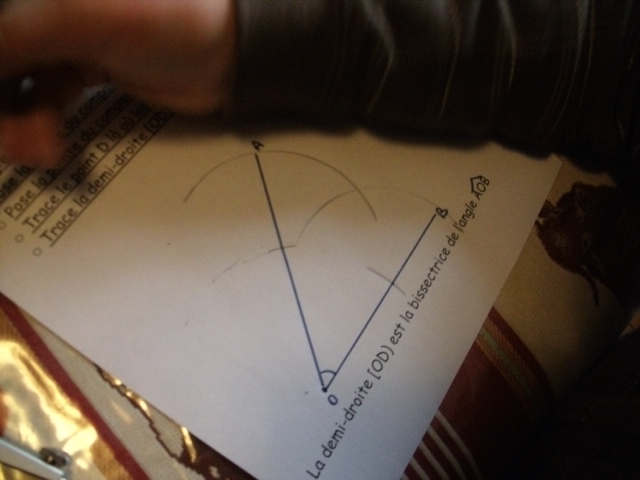 Il fait un petit trait avec le compas sur le premier côté de l'angle.