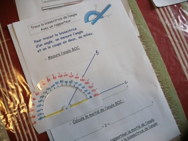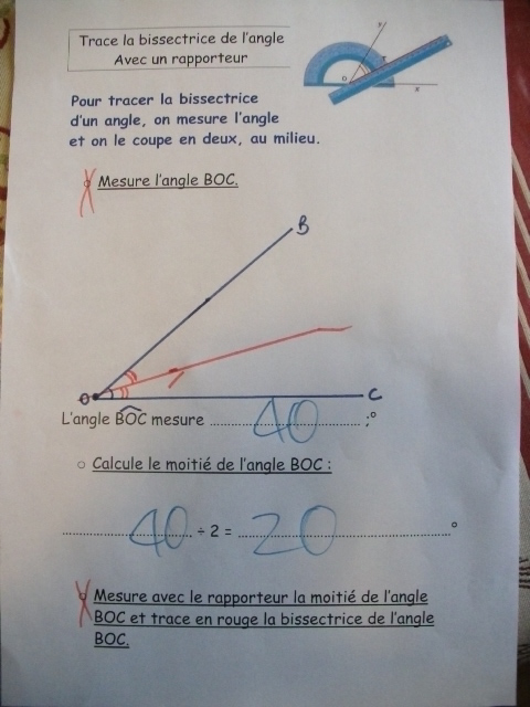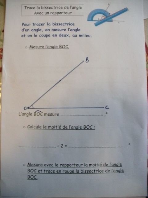 Fiches "Tracer la bissectrice de l'angle avec un rapporteur"