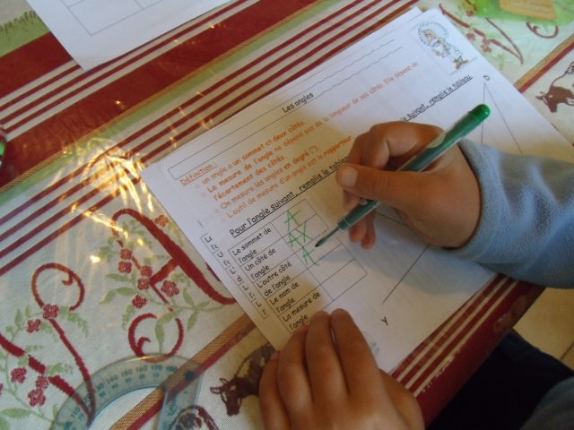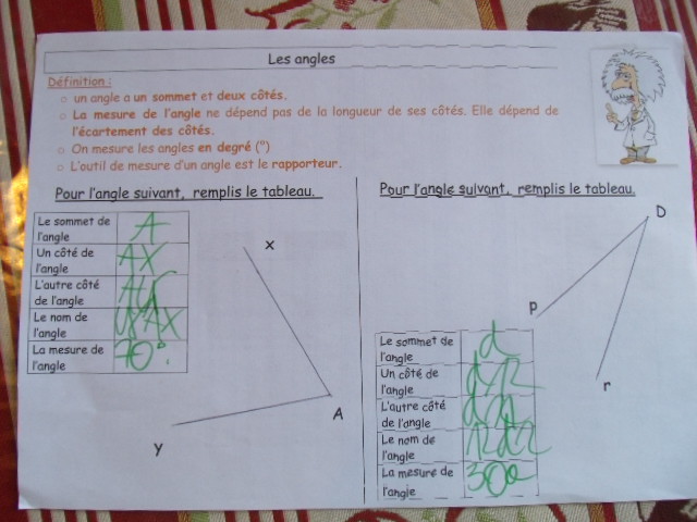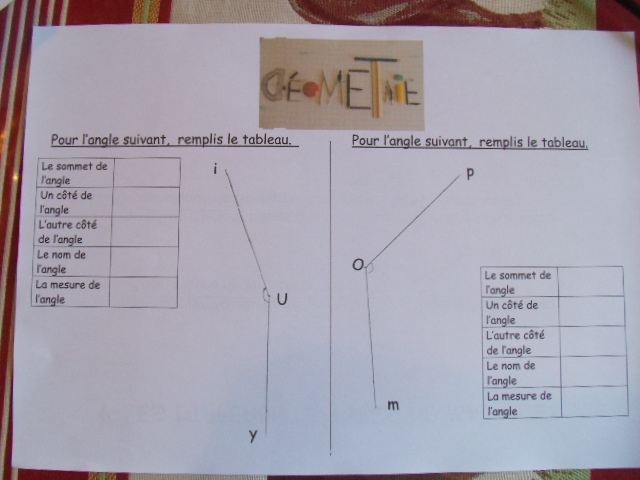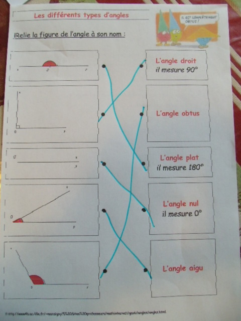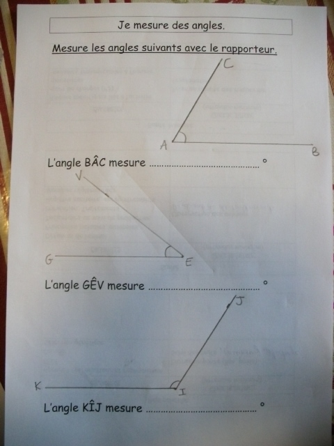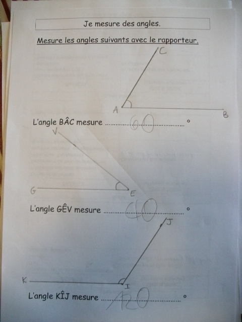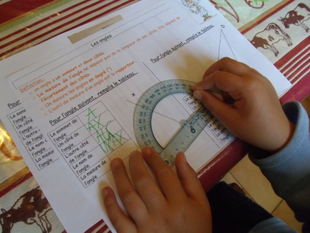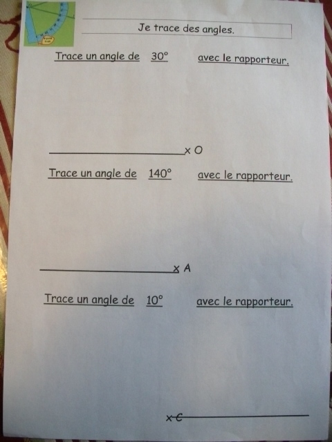 Voici l'un des exercices-types que notre fils a dû apprendre à faire pour le cours de sixième sur les angles.