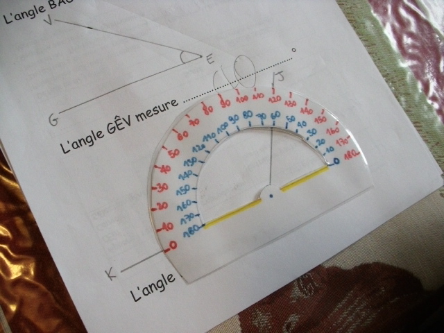 la mesure d'un angle, de bien regarder de quelle couleur est le zéro