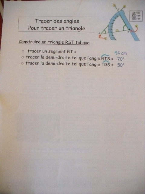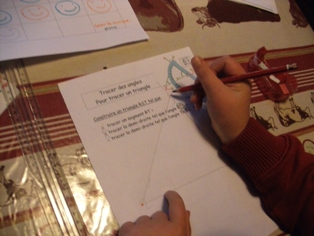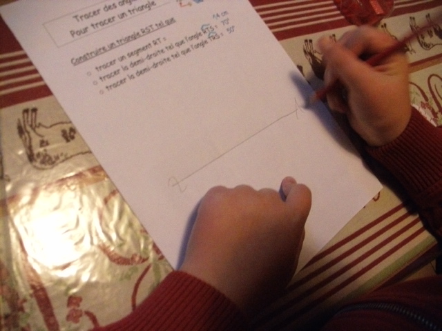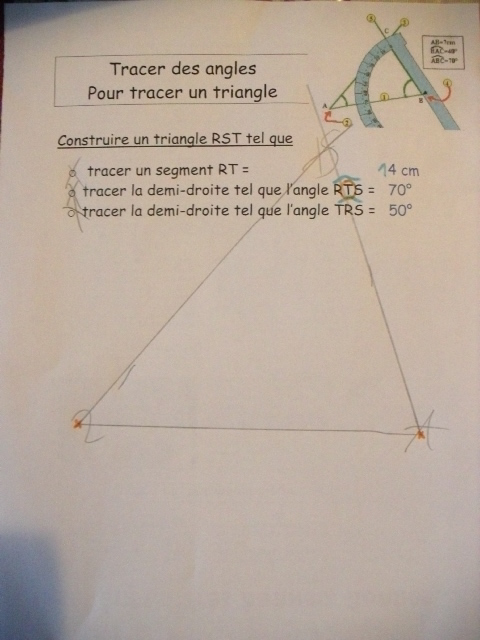 deux angles, il faut avec ces éléments, que l'enfant trace le triangle.