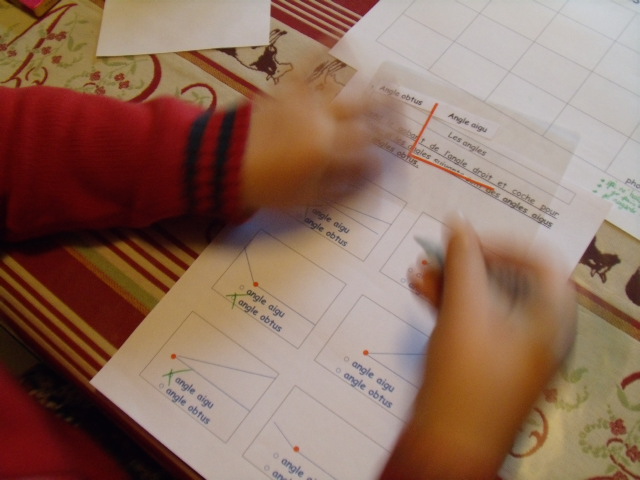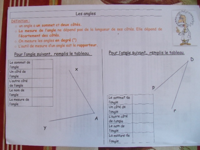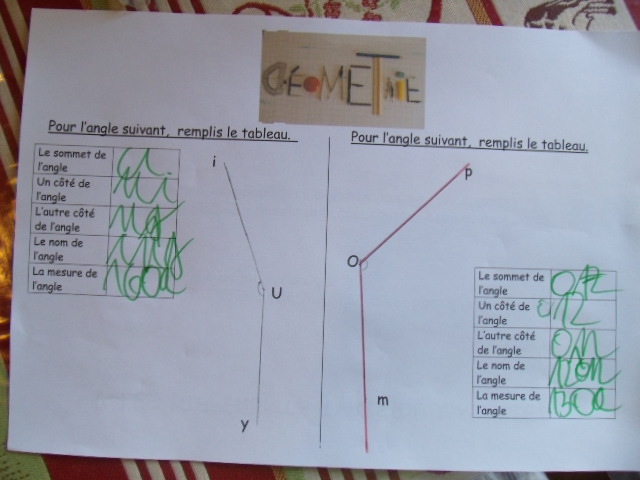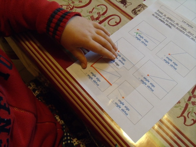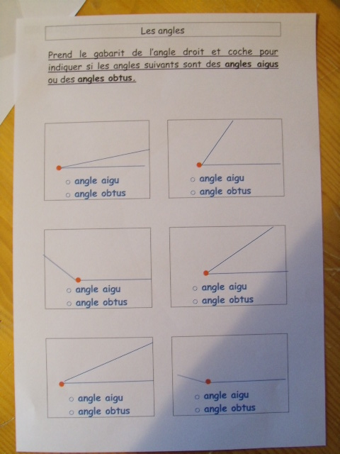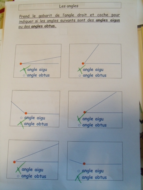leçon de Cm1, l'enfant doit savoir différencier les angles aigus et les