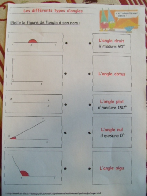 Fiches "les différents types d'angle"