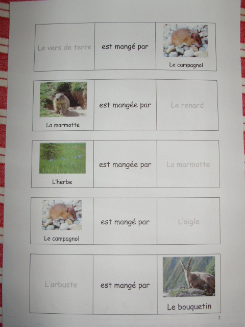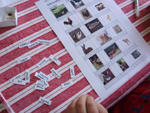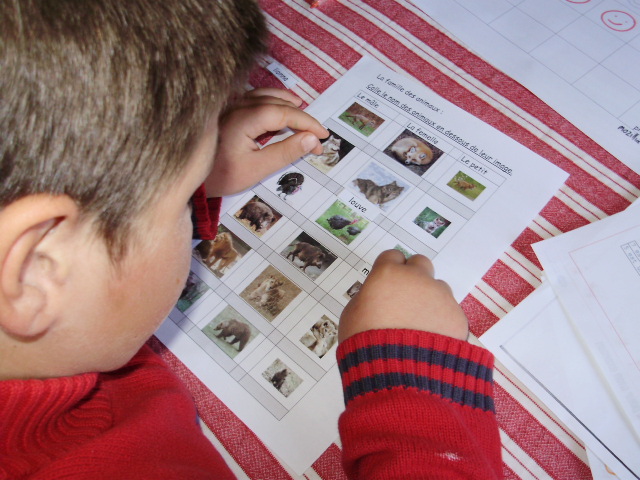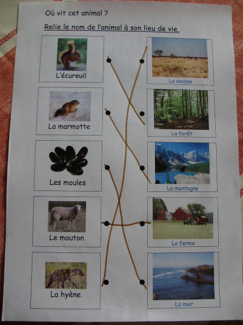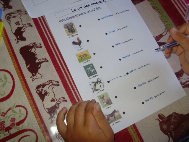 j'ai proposé une série de fiches sur lesquelles l'enfant doit relier la