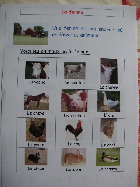 travailler ce point. J'ai commencé par les animaux de la ferme les plus