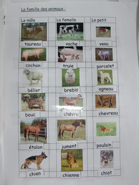 est le mâle de la chienne", "le porcelet est le petit de la truie".....