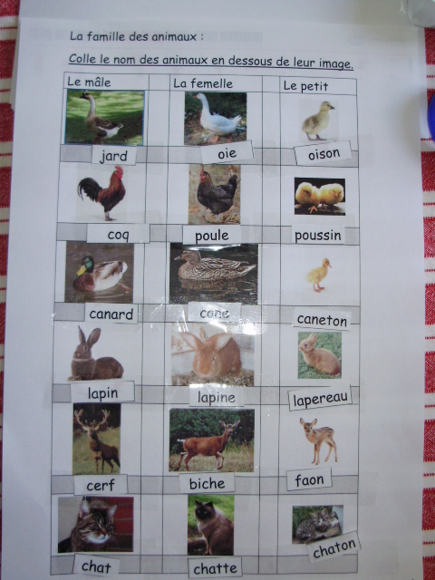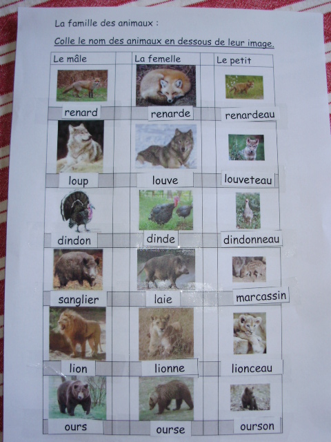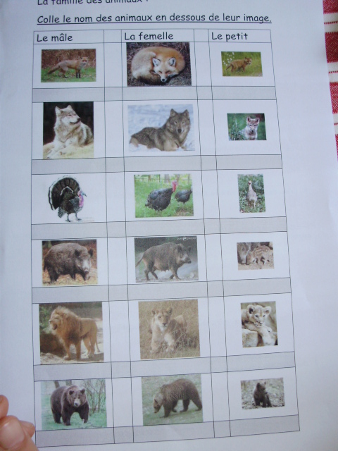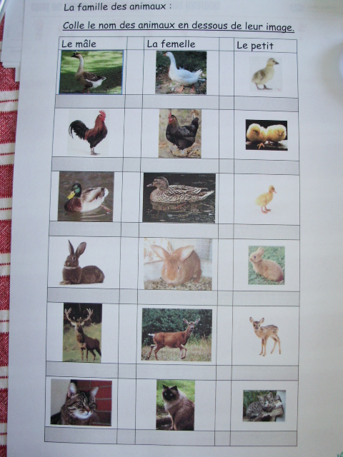 endroit que pour la fiche précédente sans regarder la photo!! Les étiquettes avec les noms des animaux, à coller, sont à la fin du fichier.