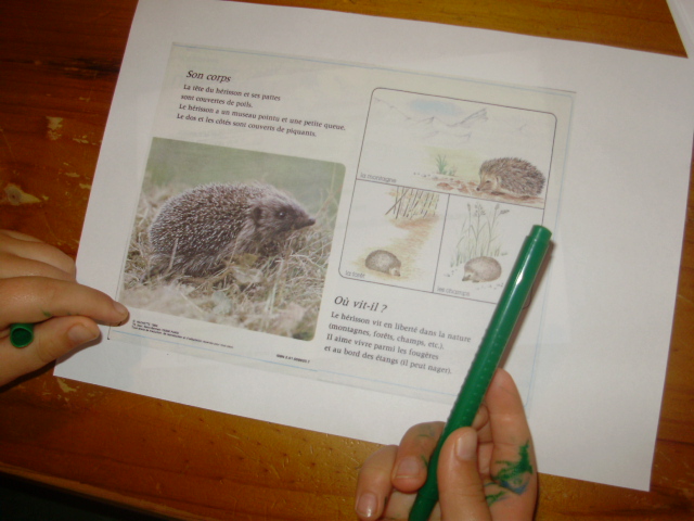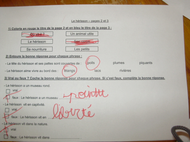 Fiches avec les questions sur le hérisson format pdf