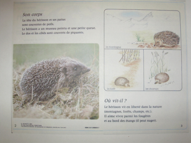 hérisson. L'auteur a créé pour chaque double page, une série de