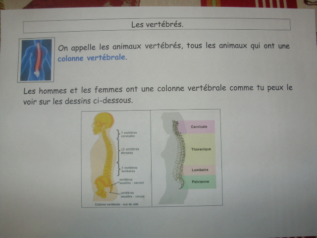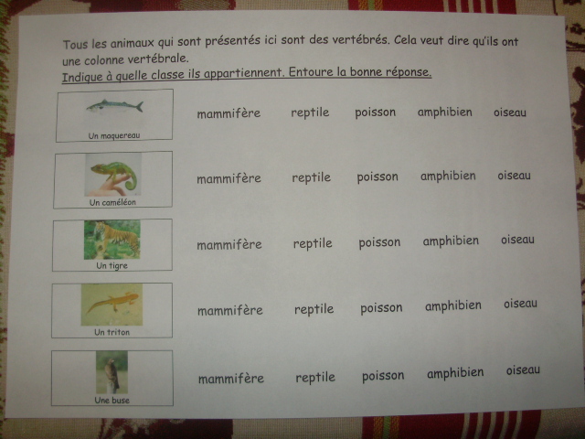 Les premières fiches abordent la notion de vertébrés en général, puis,