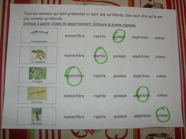 une nouvelle série de fiches sur les familles des animaux. On s'oriente