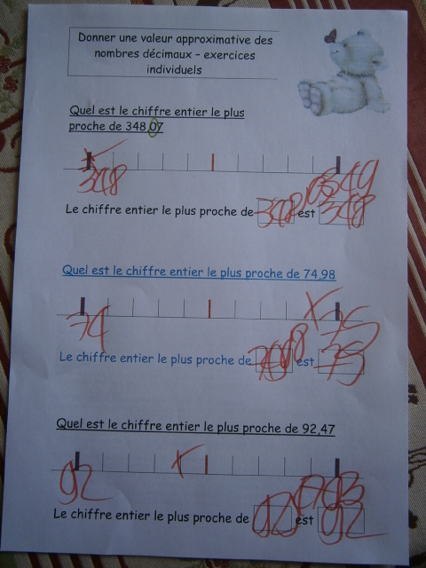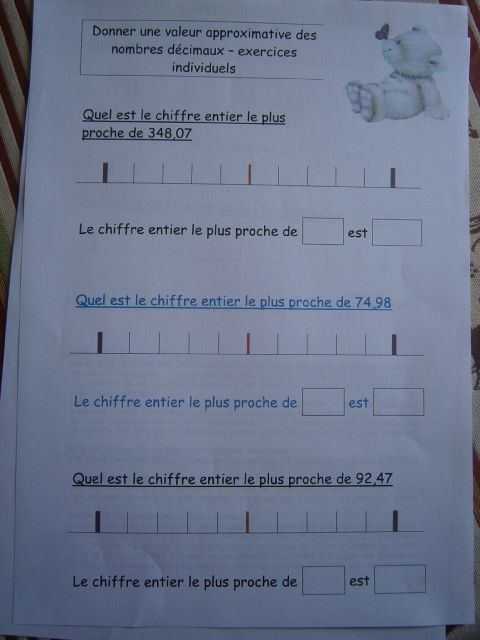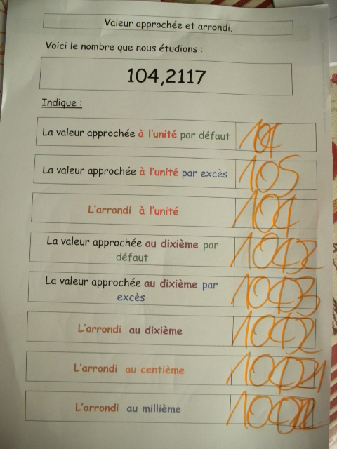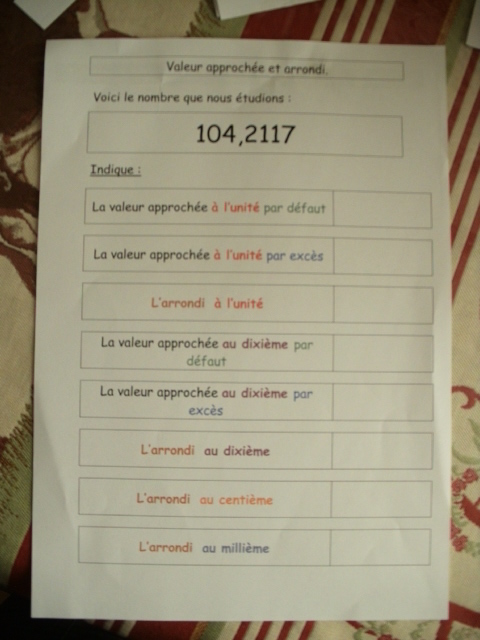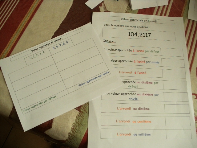 Fiches "arrondi et valeurs approchées d'un nombre décimal - série 1"
