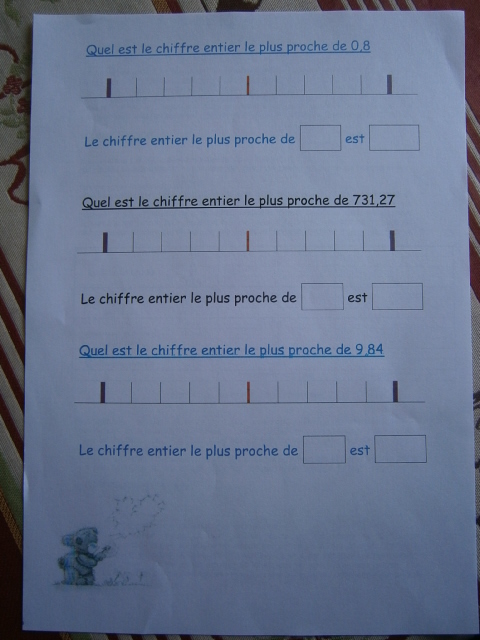 Fiches "arrondi des nombres décimaux à l'unité" - série 1