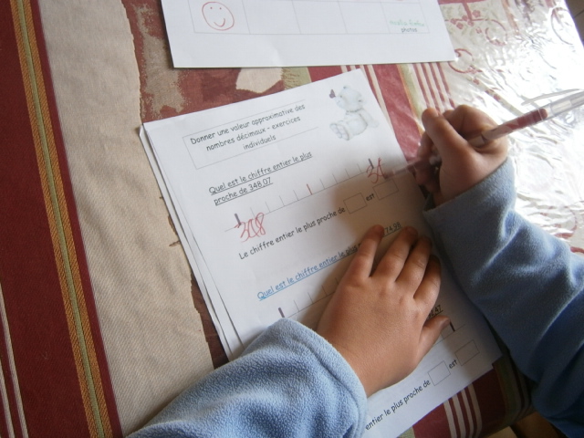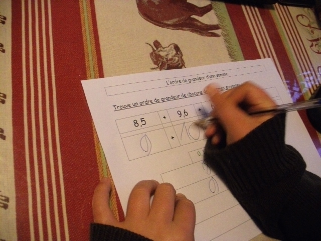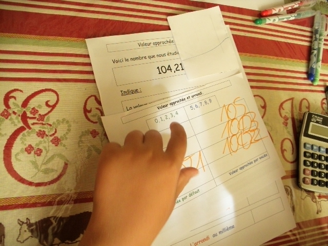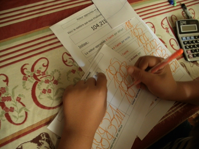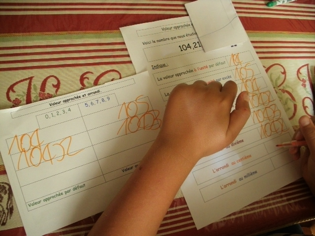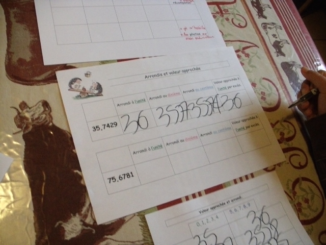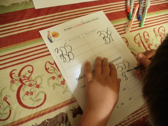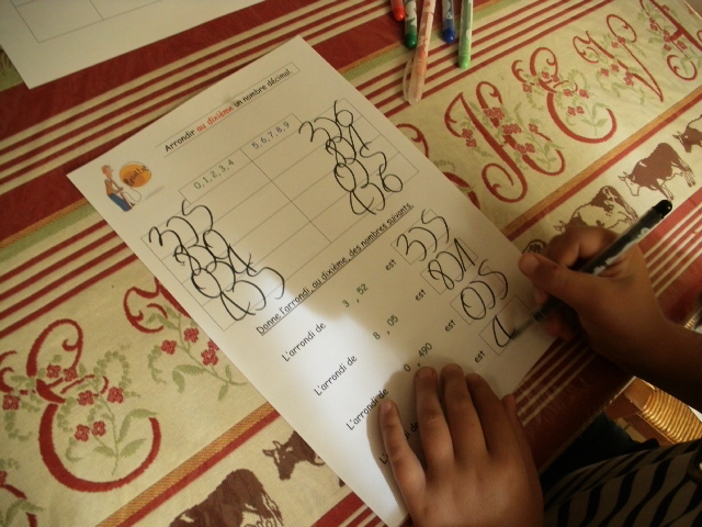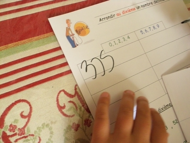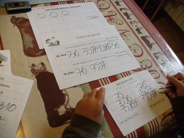 Dans la colonne de droite, il écrit le nombre décimal qui suit. Ma