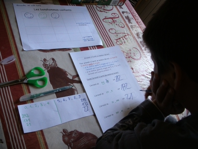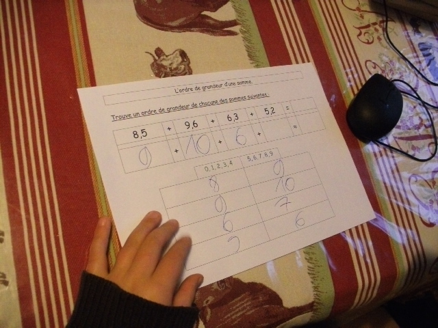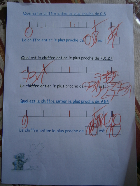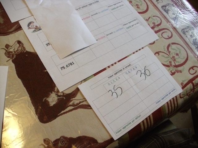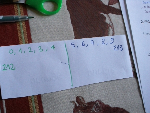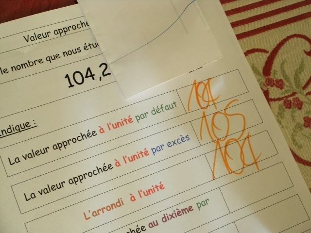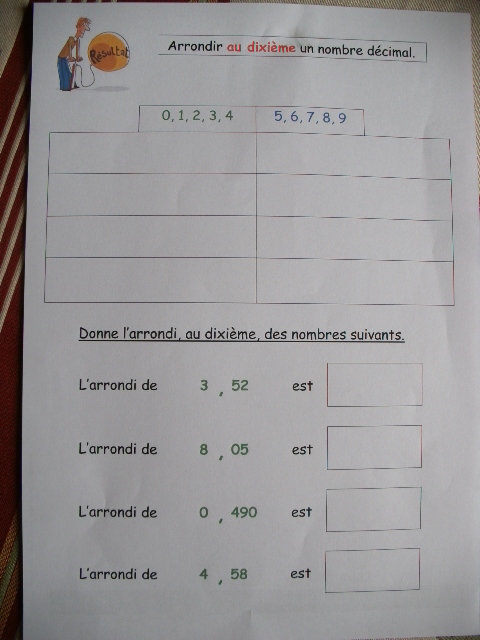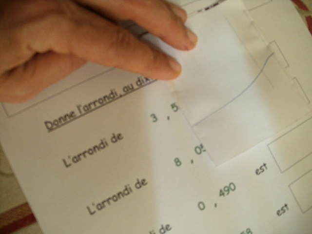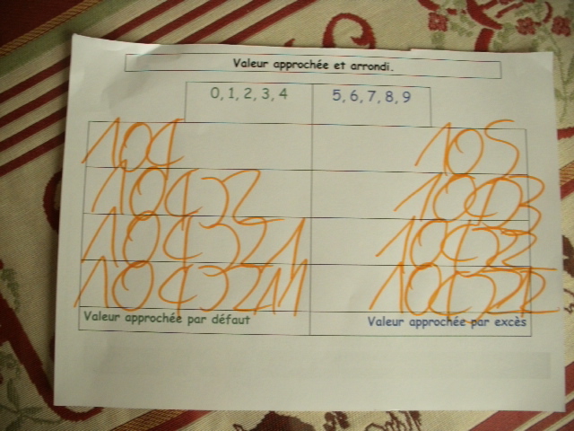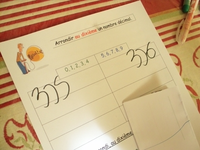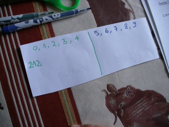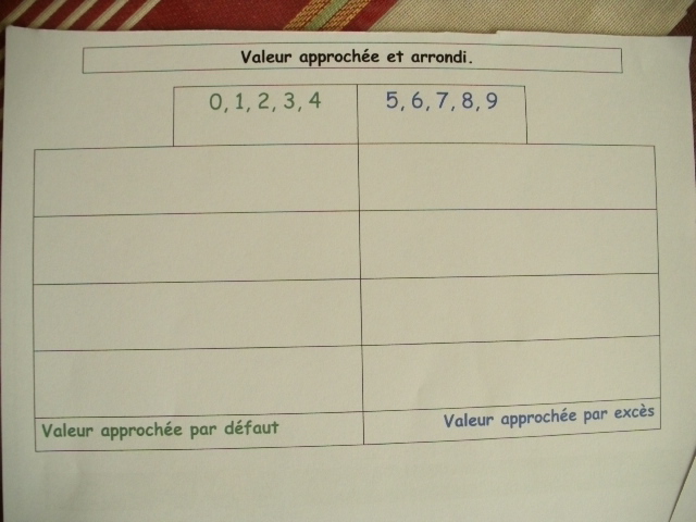 J'ai préparé une petite feuille comme celle-ci. Les chiffres que j'ai écrits en haut, correspondent au chiffre des dixièmes.