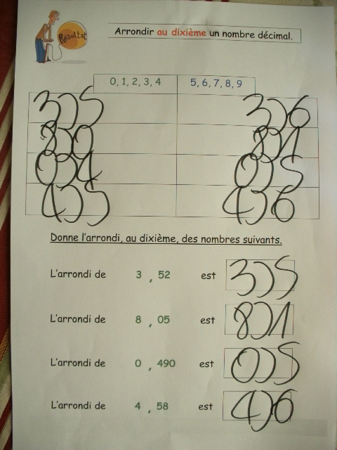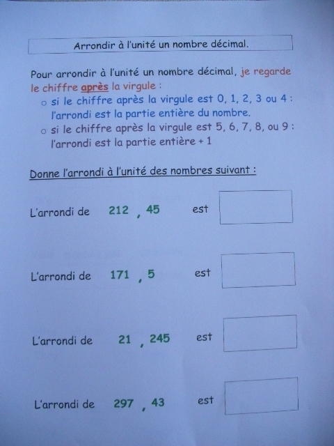 dixièmes, on arrondit à l'unité inférieure ; à partir de 5 dixièmes, on