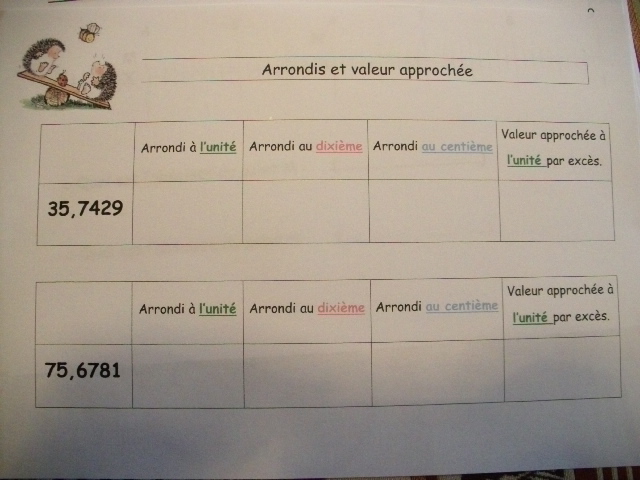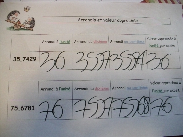 tableau que nous avons utilisé pour apprendre à arrondir. On écrit,