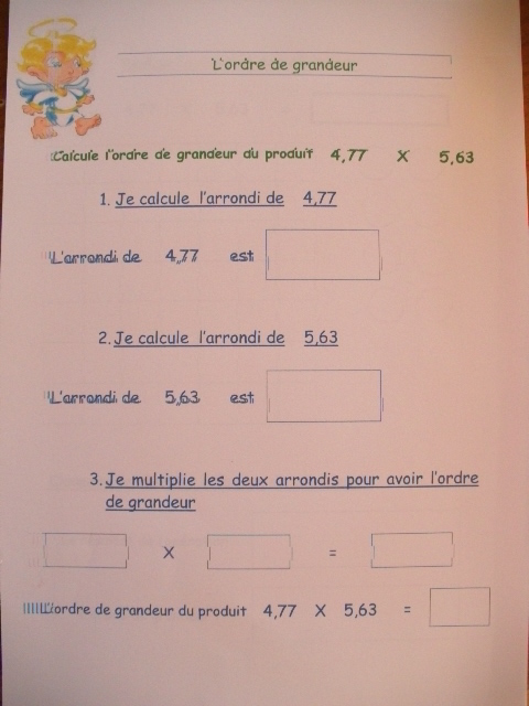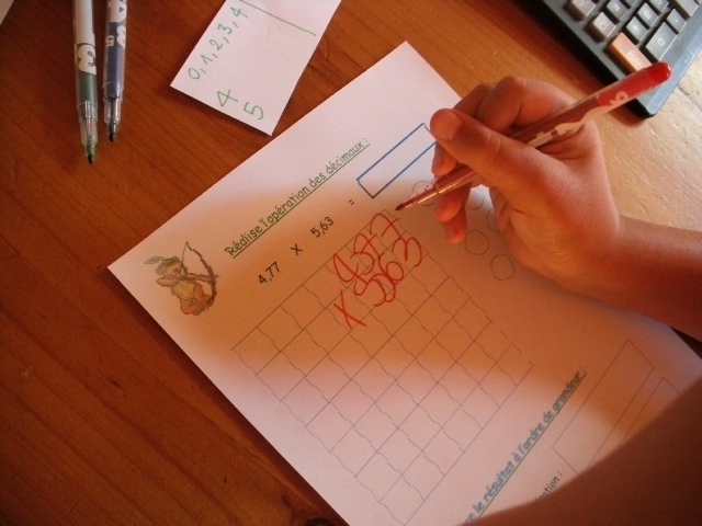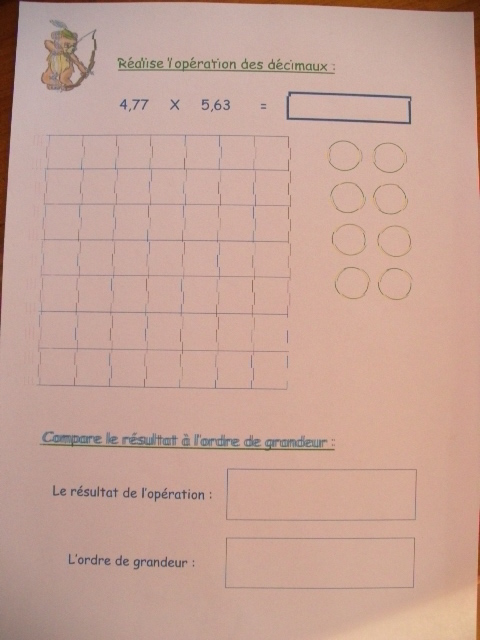 la seconde fiche, on réalise la multiplication des nombres décimaux