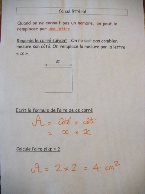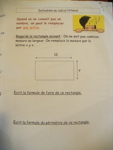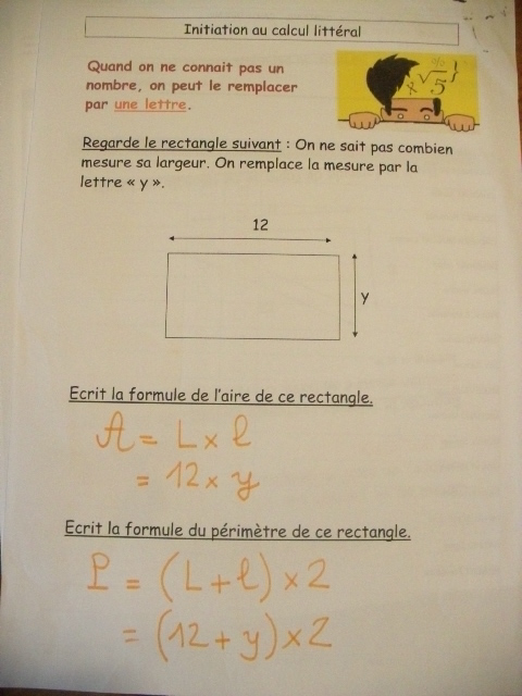 programme de cinquième, il y a une nouveauté : le calcul litteral dans lequel on remplace certains nombres par des lettres.