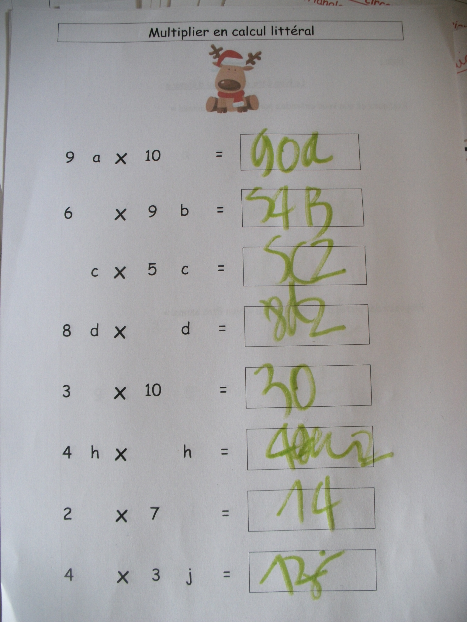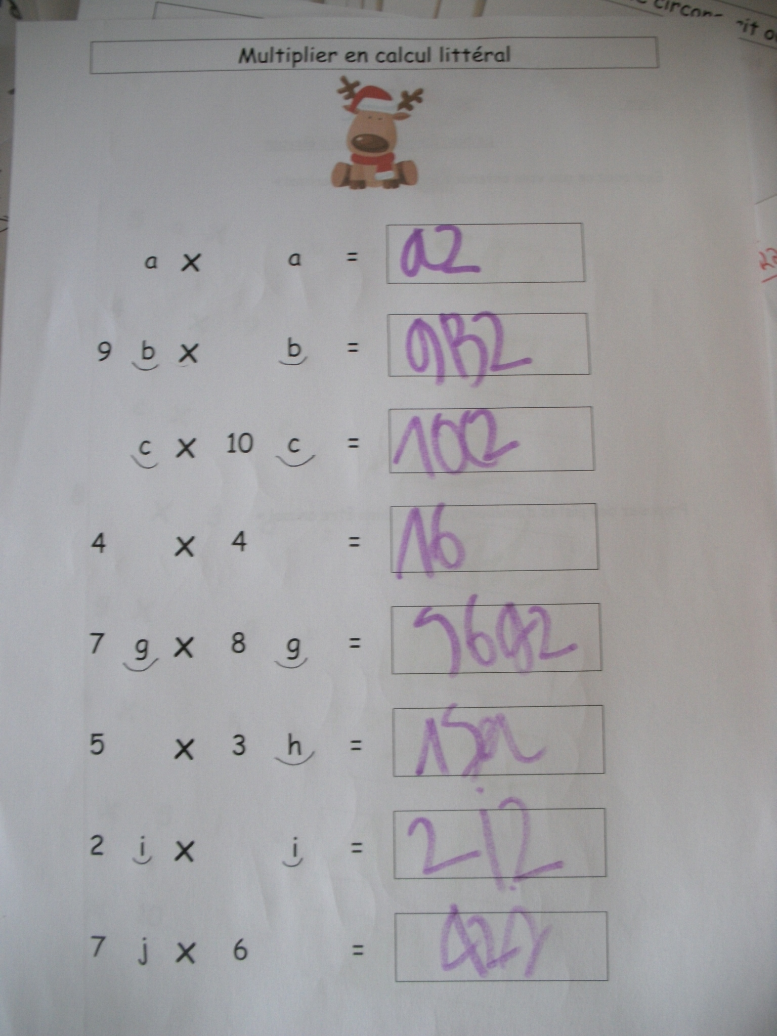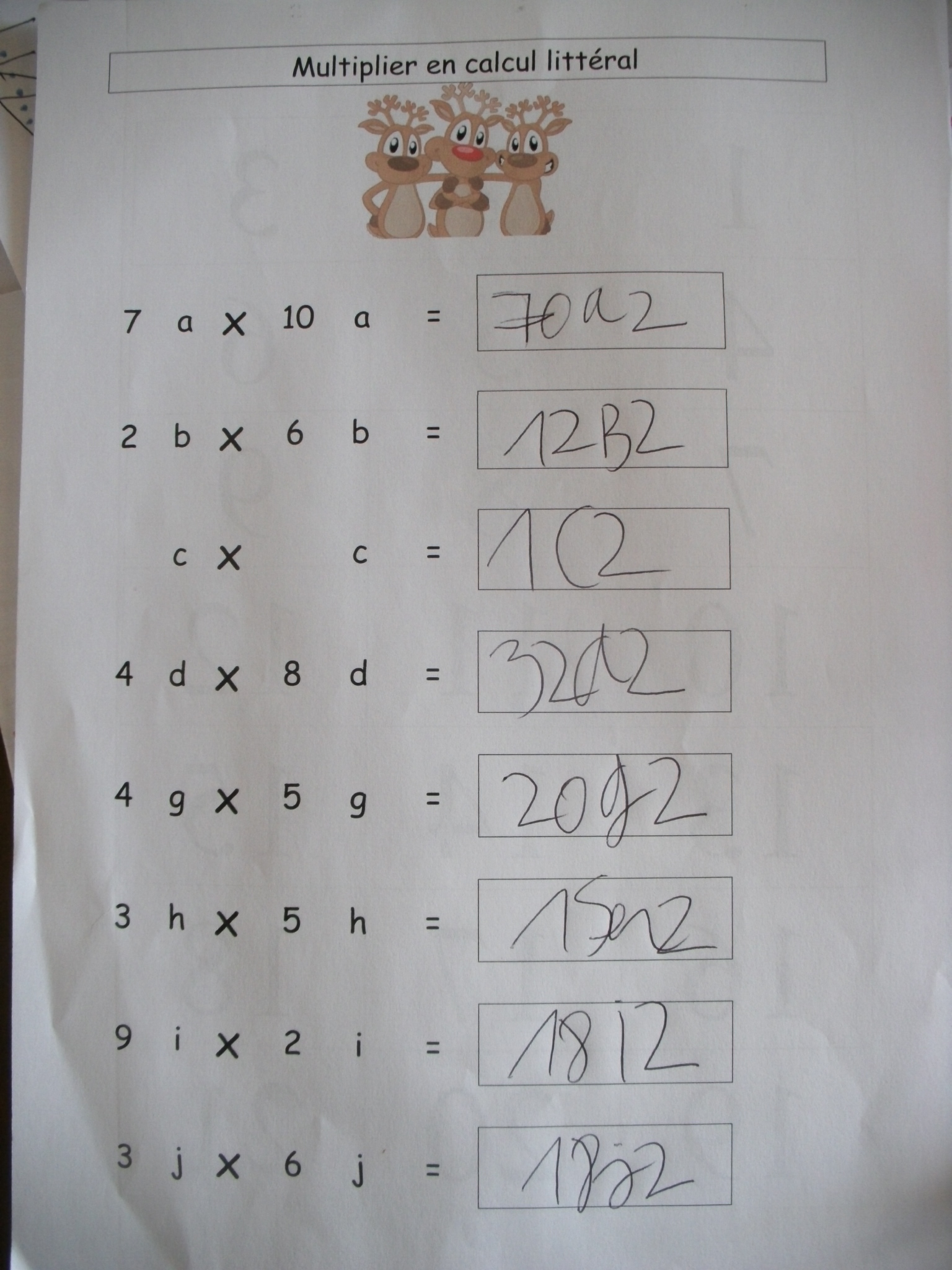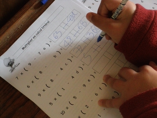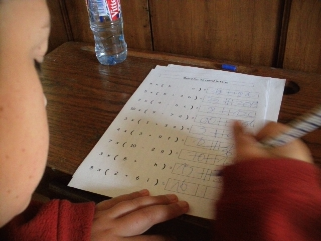 : on multiplie deux nombres comprenant des lettres pour que l'enfant