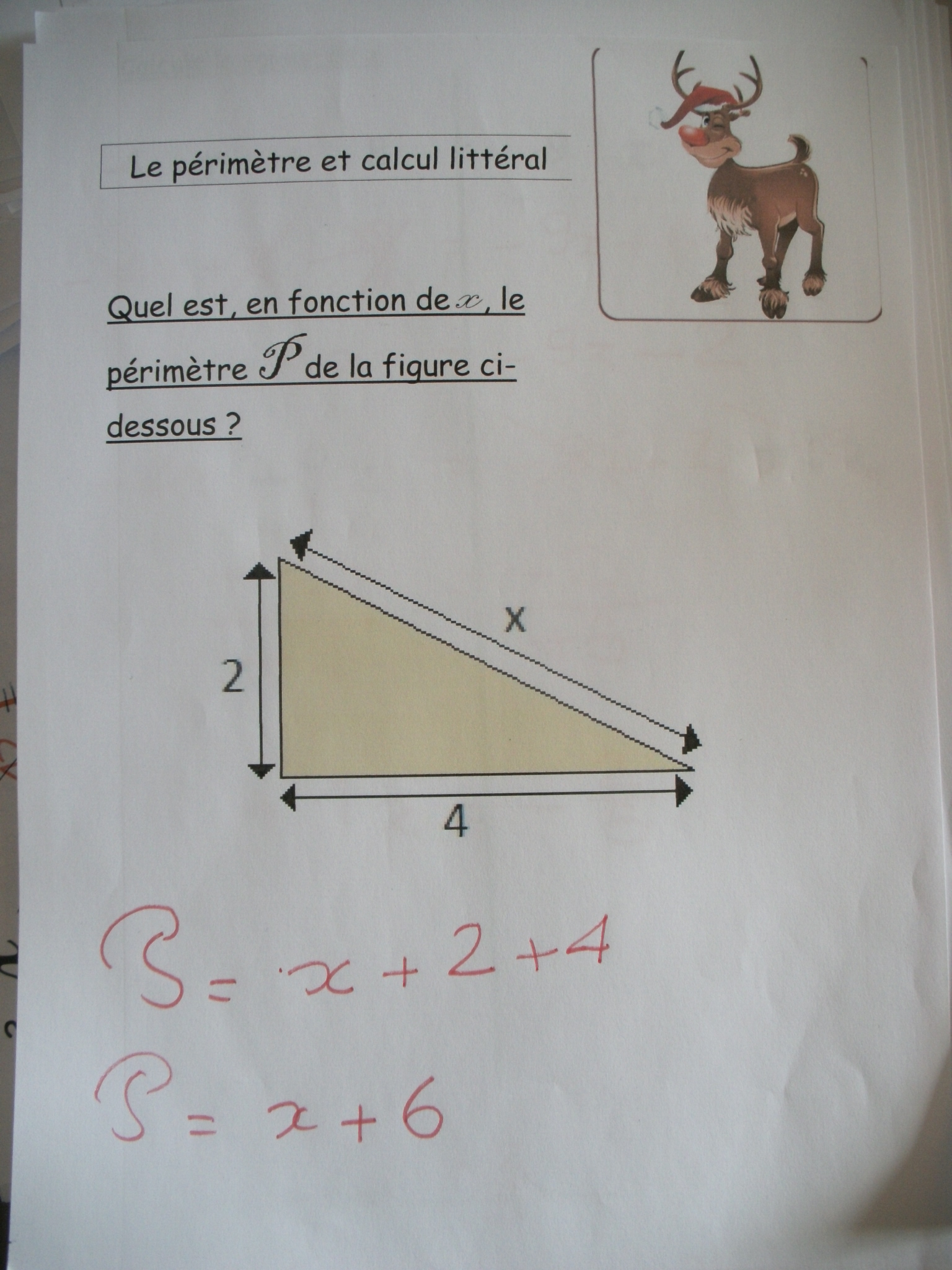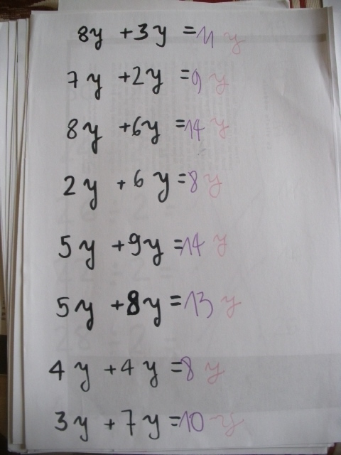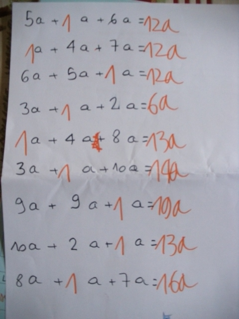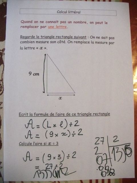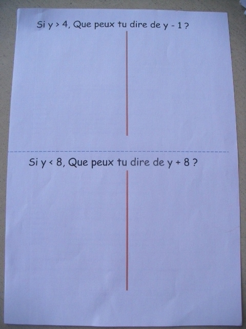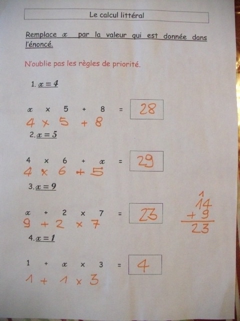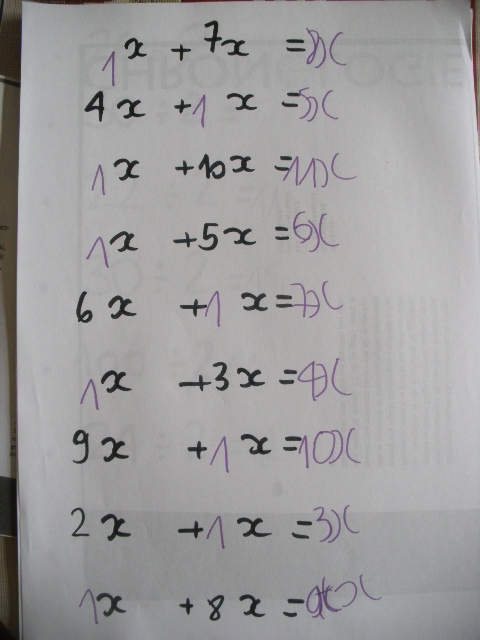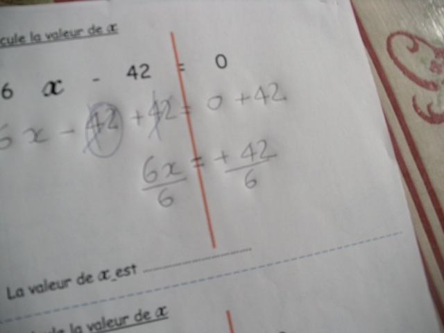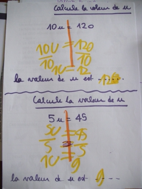 Dans cette série de fiches, je demande à l'enfant de remplacer "x" par une valeur que je lui ai proposée.